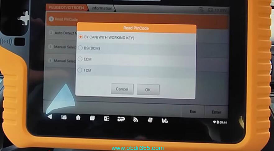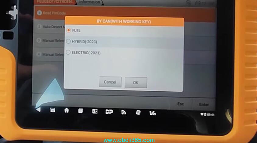 Select Read Pin Code (By CAN with working key)->Fuel type