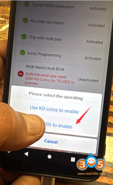 Tried to activate MQB software license for Keydiy KD-X4, choose pay to activate license but failed. It said the balance not enough. How to fix it?