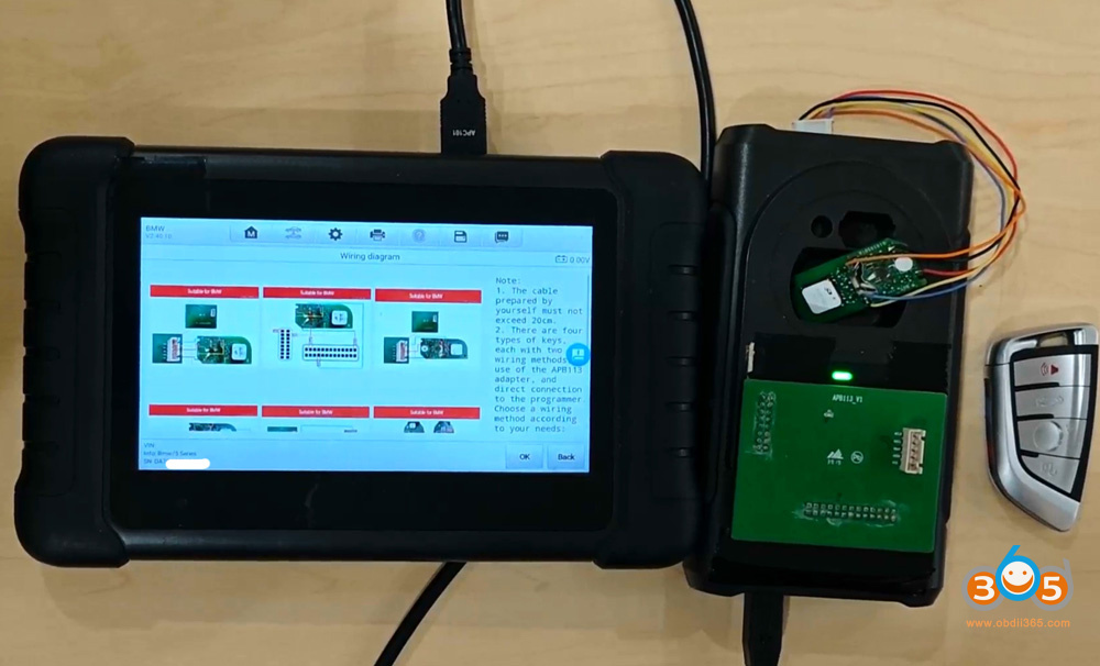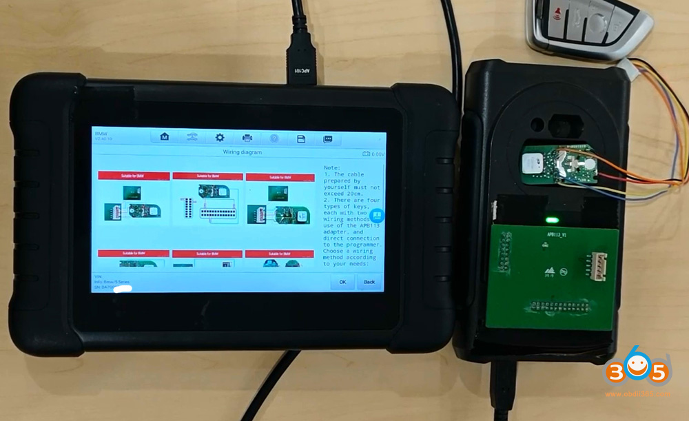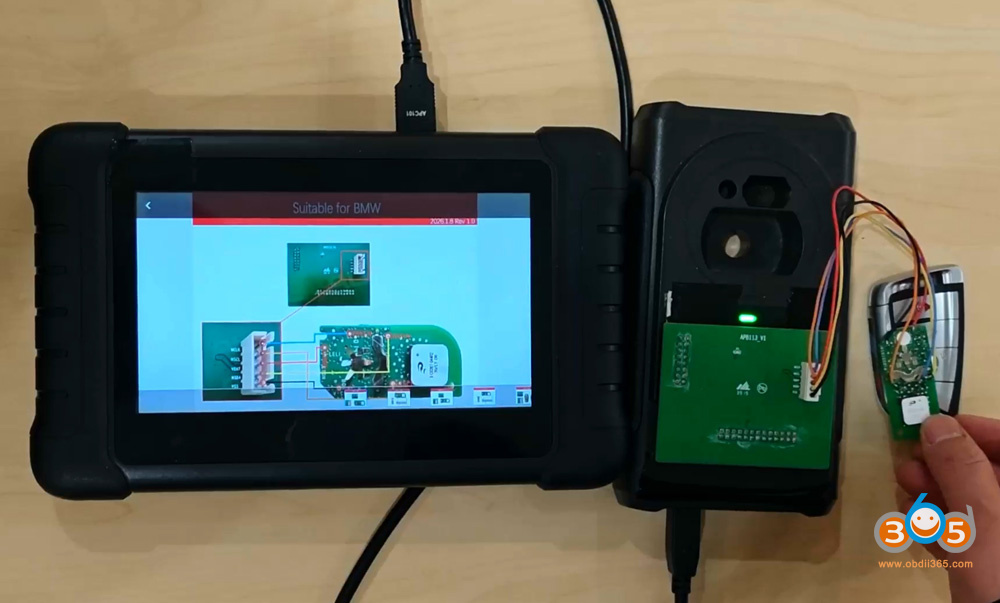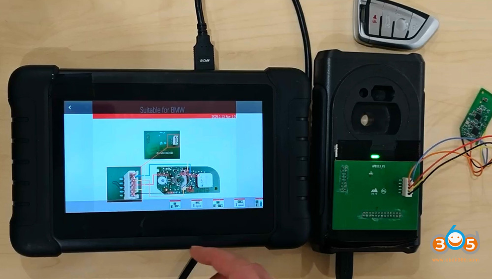 Connect APB113 adapter with key circuit board and XP400 programmer.