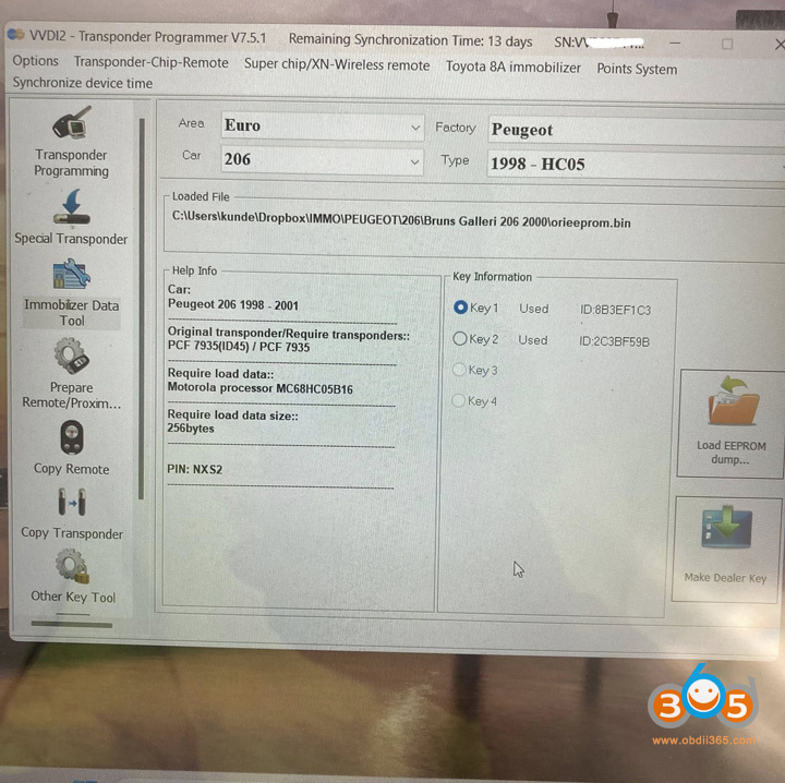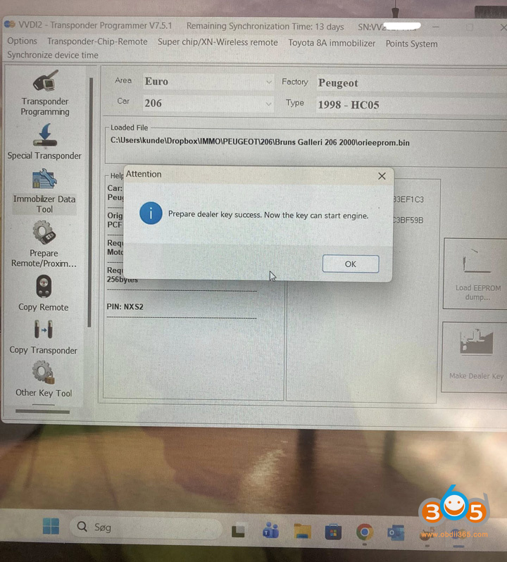 Program Peugeot 206 (1998-2000) all keys lost with Orange5 and Xhorse VVDI2 programmer.