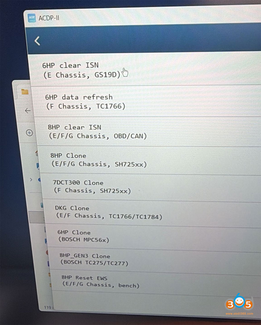 Tried to clear BMW E-chassis 6HP ISN code with Yanhua Mini ACDP2, the APP stuck and not continue.