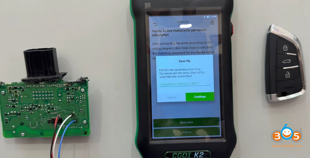 Before starting, ensure the CGDI K2 is powered on and properly connected to the Honda Activa’s ECM (Engine Control Module) using the correct cable harness. This allows the device to communicate directly with the immobilizer system and read the necessary security data.