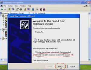 3. Start the M8 Pro. When you start it, your computer will prompts you “find new hardware”. Please click “Install from a list or specific location (Advanced)”, and then click “Next”.
