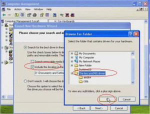 4. Please tick off “Search for the best driver in these locations” and “Include this location in the search”, and then click “Browse” to choose a installation location. Choose the driver location “browse for Folder” then choose Desktop-“The key pro (M8) driver-OK”.