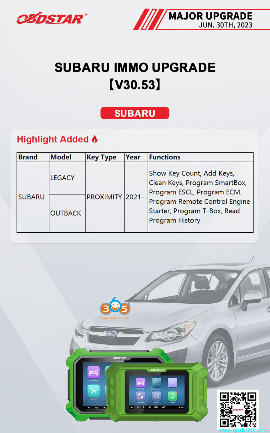 Obdstar Subaru Update